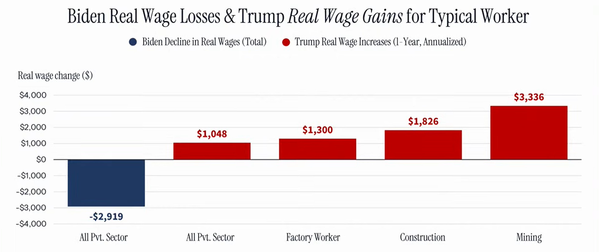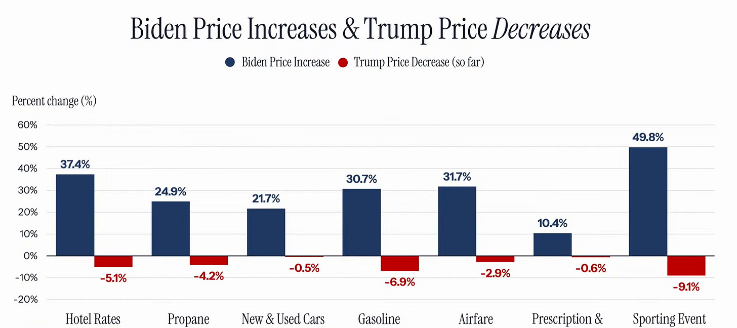 Trump made three key arguments and two key promises during his speech. The arguments: 1) prices are trending lower under Trump than Biden, 2) wage growth is beginning to exceed inflation for the first time since the last Trump administration and 3) many food categories have seen minor price decreases after substantial gains.